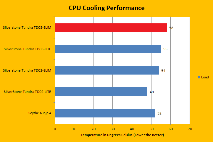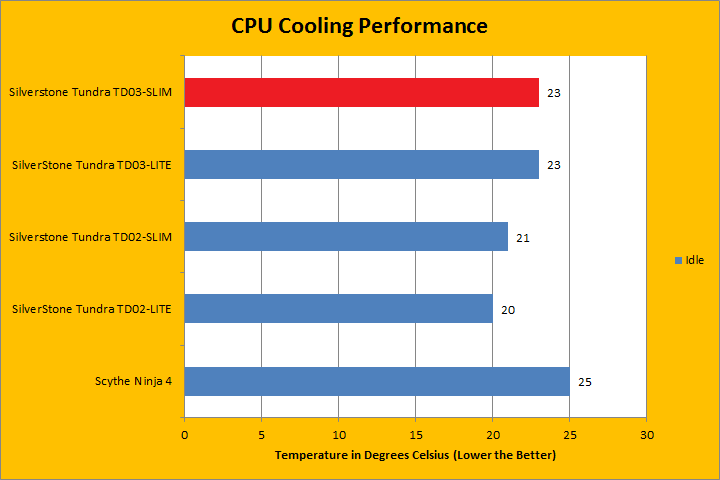 Comparing the Tundra SLIM series to the Tundra LITE series should provide a good ground for how well the cooler performs, especially considering the SLIM series is literally quite a bit slimmer. In addition, we compared it to the Scythe Ninja 4, the only air cooler on this list, to see the benefit of water cooling. The temperature results for each cooler was measured with CoreTemp, which reports the CPU's integrated digital thermal sensor for maximum accuracy. Each temperature result was calculated by taking the maximum value of the cores inside the CPU.
