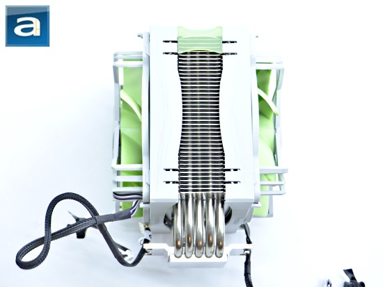 Like the Noctua NH-D14 and the Thermaltake Frio, the Jing is a copper/aluminum hybrid heatsink electroplated with nickel. If you are wondering, the base and heatpipes are made out of copper, which as a thermal conductivity of 401 W/mK. Aluminum is used mainly for its lightweight properties, with a thermal conductivity of 237 W/mK. This is not the best for heat transfer, as it retains more heat than that of copper. The heatsink does not have any copper color visible on the base or on the heatpipes, because the Jing is electroplated with nickel on top. The thermal conductivity of nickel is 90.9 W/mK. Of course, nickel has lower thermal conductivity than copper, but overall performance should not be hindered significantly, since only a thin layer of nickel is applied to the unit's vitals. In fact, the nickel plating will help prevent corrosion -- a definite must to retain performance in the long run.