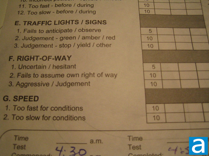 Here's some tips and guide to the Alberta road test. Most tests should be similar, but below is an example of the Class 5 Probationary examiner's checklist. I'll go over what each means.