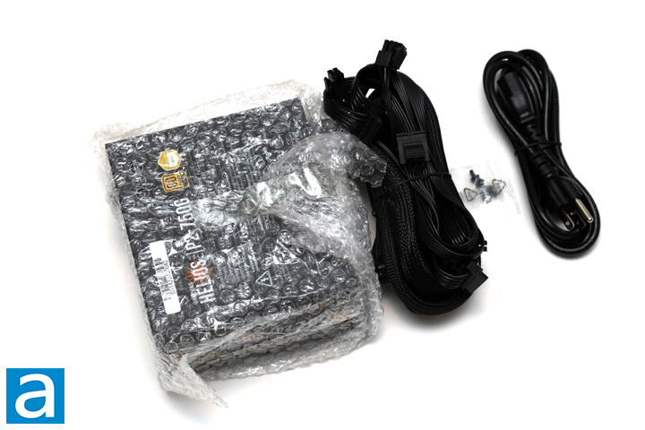 Out of the box, we have the GAMDIAS HELIOS P2-750G 750W wrapped in a bubble wrap and sealed with some clear plastic tape. The attached cables are bundled together with a twist tie. A small clear pouch holds screws for mounting the power supply. Finally, we have a standard power cable to plug the unit into the wall socket. There is no physical reading material included. Otherwise, I cannot seem to find information about the warranty length of the GAMDIAS HELIOS P2-750G 750W, whether on GAMDIAS' website or on the box, so do keep this in mind.