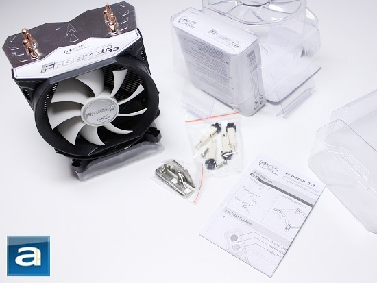 Over the past decades, technology has rapidly evolved. From legacy typewriters and paper to modern day keyboards and Microsoft's Office suite, the way we work has changed dramatically. This goes without saying that human attitudes towards technology have also evolved. From the typical 1990's "Can I use your old-school desktop, dad?" to the modern day setting of having one or more computers for everyone in the family, an increasing amount of people are becoming more obsessed with possessing their own personal electronic devices. Let's put it this way: Can you name the last high school kid who doesn't even know what half the parts in their computers do, and yet is now attempting to build their own system? Yeah, I can name quite a few. In general, everyone wants the latest and greatest, especially when it comes to computers. What I have specifically noticed in this area is the competition between people when it comes to processors. Some swear by Core i5s, which becomes surprisingly competitive against LGA 1156 Intel Core i7 processors once overclocked. But when it comes to CPUs, many other factors also come into play. This includes one of the biggest elements -- heat. Overclocking with increased voltage would introduce a large amount of heat, and your stock heatsink isn't necessarily designed to handle all the extra thermal energy. This is why many computer enthusiasts invest in aftermarket CPU cooling. These can range from a small price tag on value oriented units, to more bank-account-demanding high performance units like the Noctua NH-D14. Following up on Arctic Cooling, they claim to have produced a heatsink that is able to cool mid-range to higher end processors at a mere $35 price tag at press time. Compatible with Intel sockets 1366, 1156, and 775, as well as AMD sockets AM3, AM2+, AM2, 939, and 754, what we have here in our labs is the company's latest creation -- the Freezer 13. Being a proud owner of an LGA 1366 Intel Core i7 processor, I feel most excited to get my hands on one of these today for the review. Read on to see if this heatsink is worth your while!