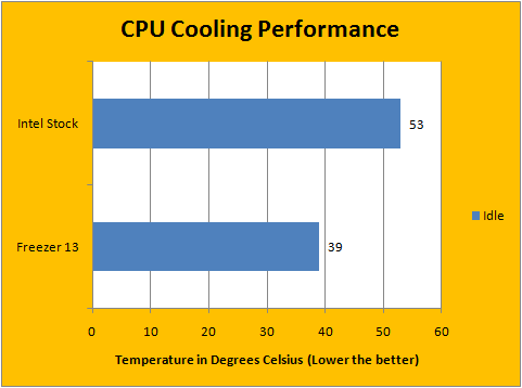 I have decided to not compare the Arctic Cooling Freezer 13 against other heatsinks, as I believe that important factors such as its engineering, noise, and performance in relation to idle/load is different for each heatsink, and it is difficult to simulate the exact two scenarios in any given situation. However, we have spent a lot of time, to our fullest ability, to simulate a very similar comparison to ensure accurate temperature measurement when comparing the Arctic Cooling Freezer 13 and Intel's stock cooler.