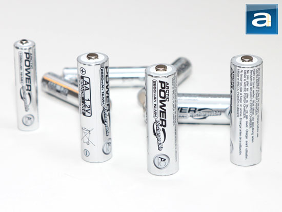All ARCTIC Power nickel metal hydride batteries carry the same design scheme, which consists of a shiny silver background with black text on top. Using nickel oxyhydroxide as its positive electrode (Making the "nickel" part of its name), and a hydrogen-absorbing alloy as its negative electrode (Which is the "metal hydride"; an intermetallic compound), the ARCTIC Power rechargeable batteries has a nominal voltage of 1.2V, and comes loaded with a massive 2650mAh capacity for AA sized units. Its AAA counterpart comes in at 1050mAh. Promising up to 1000 recharge cycles and no memory effect, we don't have much question about the battery life or endurance -- the only unfortunate news I have to bring up is that these are not low self discharge NiMH batteries, so it does not come pre-charged, nor does it hold its charge as well as the photographer-favorite Sanyo Eneloop. Low self discharge NiMH batteries are made by improving its separator and positive electrode, but you can't get them with capacity as high as the ARCTIC Power rechargeables. All in all, because of its high capacity and relatively higher self discharge characteristic, you will want to use them in high drain devices such as personal electronics rather than your favorite graphing calculator.