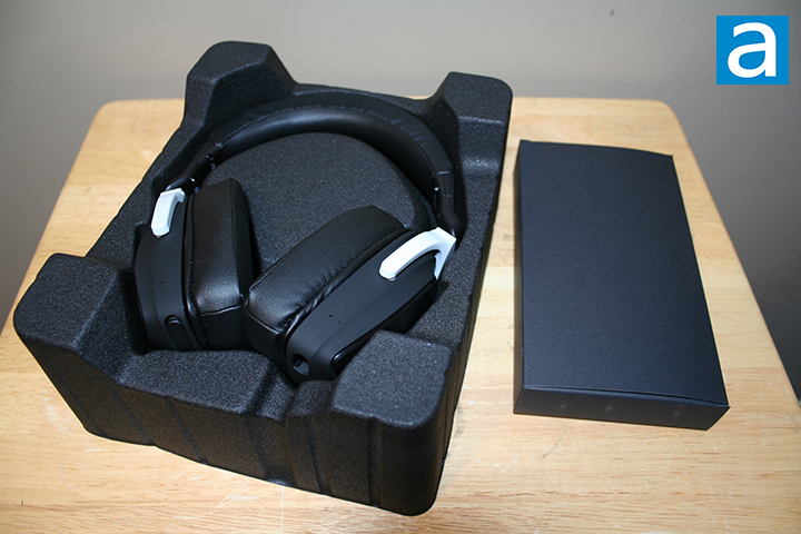 Unboxing the ASUS ROG Delta S Wireless was a standard process with nothing special of note. Opening up the retail box, we are greeted with the headphones themselves folded on a plastic tray. A box with the accessories can also be found. Overall, the retail packaging did its job as all the contents of the box arrived undamaged.