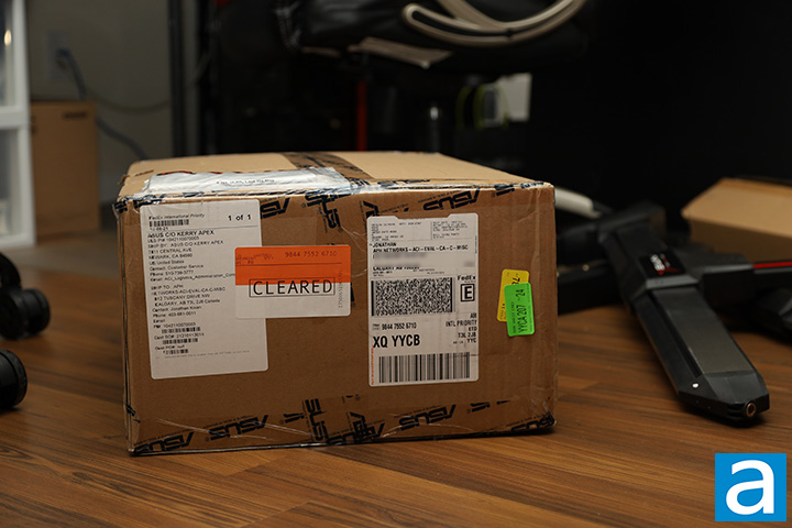 Our review unit of the ASUS ROG Strix GS-AX5400 Wi-Fi router came in a large brown corrugated cardboard box from the company's American offices in Newark, California, USA. Everything arrived in excellent condition to us here in Calgary, Alberta for our review today using the FedEx International Priority. The box also contained many other products, including the ROG Strix Scope NX TKL Moonlight White, ROG Strix Scope Impact II Moonlight White, ROG Strix Go Core Moonlight White, ROG Cetra II Core Moonlight White, and ZenWiFi XD6, which my colleagues and I will cover.