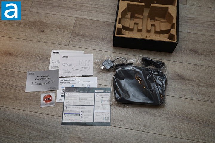Opening the flap-top box reveals a cardboard tray that contains everything neatly organized in their own sections. Out of the box, you will receive the GS-AX5400 router itself, CAT5e network cable, power adapter, warranty information, and various quick start guides.