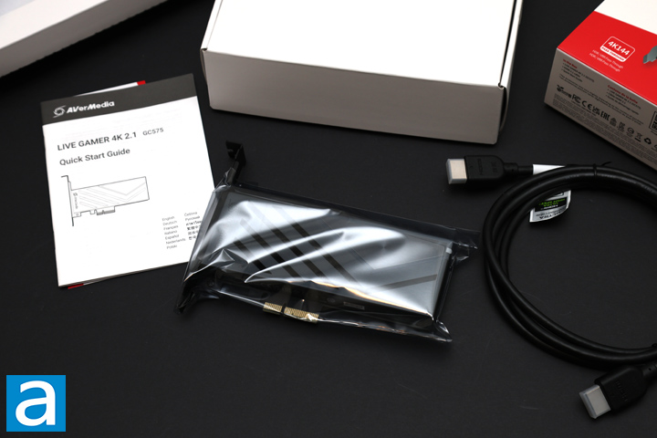 As you can see from above, everything is packaged inside an inner white cardboard box. Upon opening the box, the first thing we will see is the AVerMedia Live Gamer 4K 2.1 GC575, which is sealed in an anti-static bag. Underneath, we have another compartment containing an HDMI 2.1 cable as well as some paper material to help you quickly get started with the streaming card. The HDMI cable also has some nice plastic plug protectors to ensure the ends do not get damaged by debris or other particles while in transit. There is not much else, so let us take a closer look at the card itself.