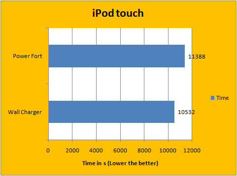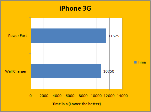 Compared to the original Choiix Power Fort with a 10WHr battery, the charge time for my iPhone 3G and iPod touch is approximately the same. The original Power Fort is capable of charging those devices 2.5x over, compared to the Power Fort 5.5's 1.2x (48%). This is slightly lower than the ideal of 55%, but still within specifications. The charge time of the Power Fort itself is two hours compared to the bigger Power Fort (57%).