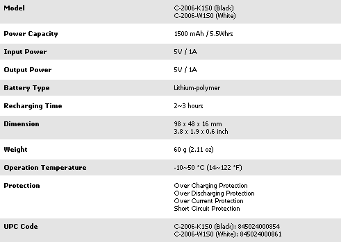 Much like the Choiix Power Fort, the Power Fort 5.5 includes two USB cables, carrying case, and a manual. As mentioned earlier, the Power Fort 5.5 can be removed from the clear plastic cover clipped from the inside. This carrying case is no different from its bigger brother's case, which is partitioned into two sections -- one side to store your wires, and the other section for your Power Fort 5.5. When purchasing at retail stores, the Power Fort comes in two different shades, with one in black, and the other in white. Our particular unit came in black. Personally, I believe the black colored one is much slicker than the white colored one. However, the white colored one looks pretty decent as well -- no racist overtones intended, haha. As far as trim levels are concerned, there is only one version of the Power Fort 5.5, unlike the Power Fort 10WHr, which is available in either a Standard version or an Advanced version.
