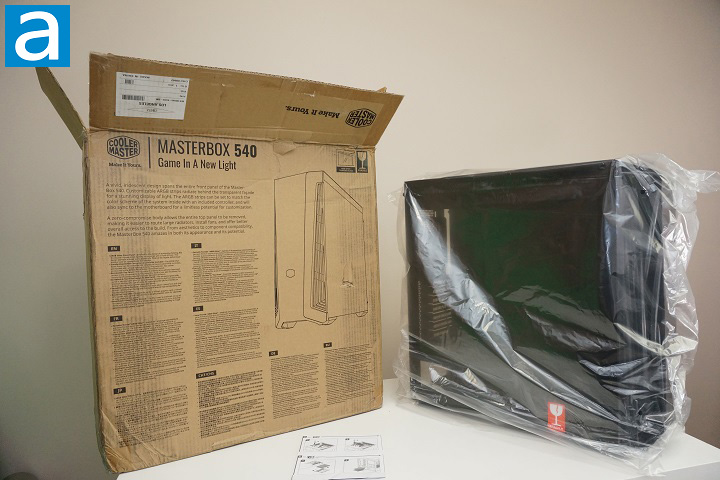 Usually, a good retail package design can draw people’s attention and make the product itself stand out among hundreds of other products on the shelf. However, a computer case is different. Most of the time, the retailer will either directly put sample cases on the shelf or just demonstrate some fully built computers using those chassis. I personally would not buy a computer case just because it looks great on the box. The retail package of MasterBox 540, which is also the shipping package, is essentially a cardboard box in its original color. One sketch of the case is shown on the front cover of the box. The company’s name and famous “Make It Yours” slogan are presented at the top left corner. In the bottom, there is the model name of the product, and there is also a "Game in A New Light" printed on the box, which I think it means this product has really focused on the RGB lighting performance. The retail box design of MasterBox 540 is simple, so if you were looking for more information, I would recommend looking at Cooler Master's website.