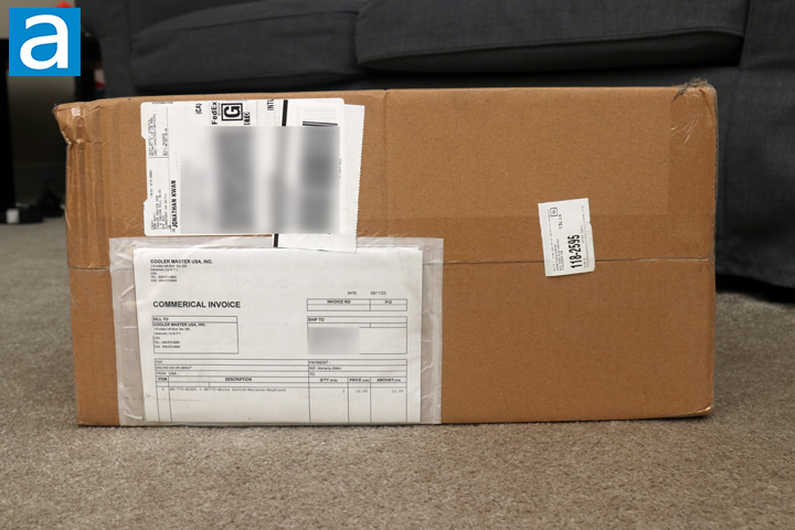Today's review unit of the Cooler Master MK770 arrived from Cooler Master's offices in Claremont, California, USA. Traveling with FedEx and their International Ground service, this box arrived to our APH Networks location in Calgary, Alberta, Canada. It was in good condition with only a slight dent in one of the corners. Inside, Cooler Master packaged this box well and included sufficient packing materials to keep the contents of this corrugated cardboard box safe.