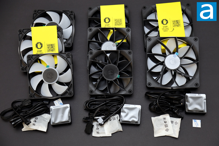 Upon opening the box, I quickly understood why it was so heavy: Corsair sent us six copies of each fan, which means we had three boxes of the RX140 RGB 2-pack and two 3-packs of the RX120 and RX120 RGB. That is a whopping total of eighteen fans. Since none of us here at APH Networks individually need that many, we decided to divide them up among the editors, and now we have three authors writing this review.