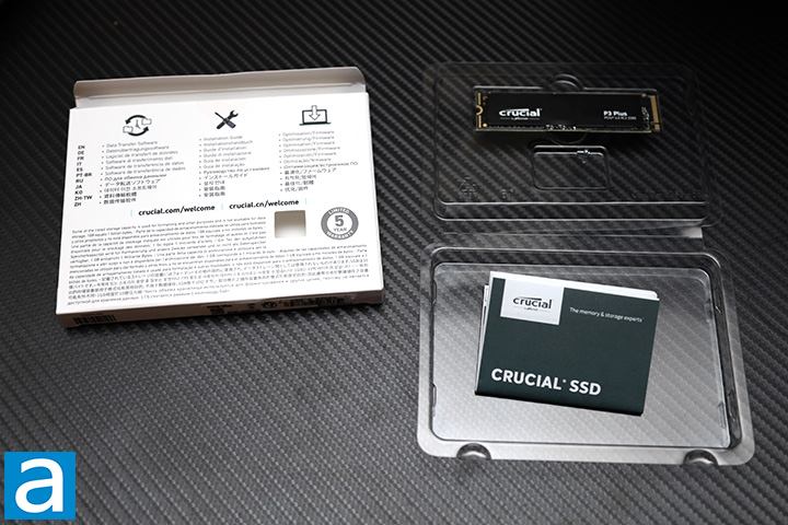 Opening the box reveals the Crucial P3 Plus 4TB itself and a screw placed on a clear plastic tray. There is also a multi-language quick start guide that points you to the company's website. This is it -- out of the box, you will get nothing more than what you need. Not that we need them anyway, of course.