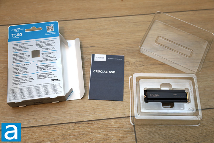 Opening the box reveals the Crucial T500 2TB itself placed on a clear plastic tray. There is also a multi-language quick start guide that points you to the company's website. This is it -- out of the box, you will get nothing more than what you need. Not that we need them anyway, of course.