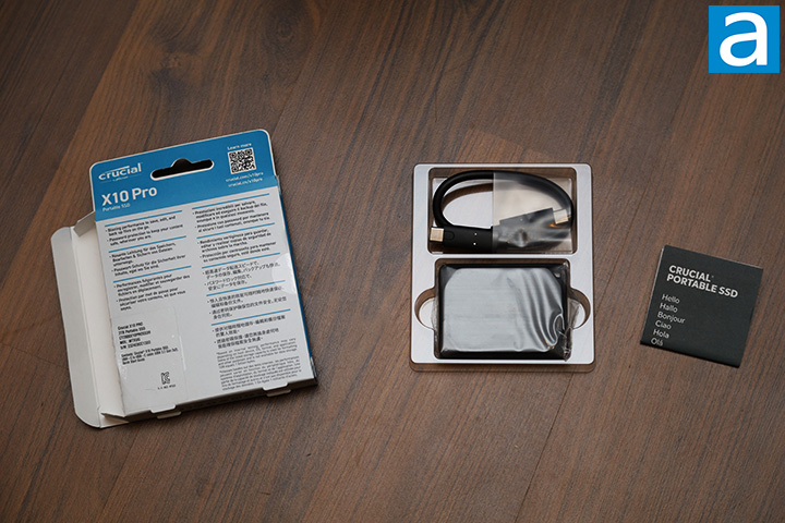 Out of the box, everything is neatly laid out thanks to a clear plastic tray and the fact there is not a whole lot of stuff to begin with. You will receive the Crucial X10 Pro 2TB itself, USB Type-C to USB Type-C cable, and a multi-language quick start guide. This no-frills approach keeps the retail box small and excess waste low, and I am always appreciative of companies who do not throw in extras for the sake of throwing in extras.