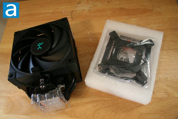 Opening up the retail packaging, we are met with the cooler itself and another box containing the installation accessories. The DeepCool AK400 Digital arrived cased in foam padding with no scratches or scuffs on the cooler itself. The smaller bag contains installation tools to mount onto Intel's LGA1700, 1200, 1151, 1150, and 1155 sockets along with AMD's AM4 socket. The Intel and AMD mounting tools are in separate bags, although there are no labels to clearly distinguish them. There is no included thermal paste, as it is pre-applied on the cooler already. A physical installation manual is included.