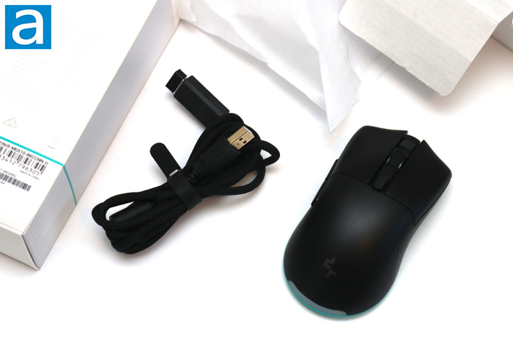Out of the box, we have a few items bundled with the DeepCool MG510, including its 1.8m USB Type-A to Type-C cable, wireless transmitter, and a USB Type-C to Type-A adapter. This last adapter is similar to what we saw with the Cooler Master MM731, and it acts as a wireless extender. This means you will use the included braided cable and attach it to the adapter, while plugging the transmitter into the Type-A end on the adapter. Otherwise, there is a bit of documentation inside to help users get started with the MG510. The mouse is bundled in a foam bag to prevent damage to the mouse while it is in transit.