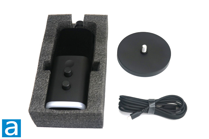 Out of the box, everything can be found sandwiched in a set of gray foam pieces. One holds a detached metal base stand, while the other holds the FIFINE AmpliGame AM8 microphone. A USB Type-C to Type-A cable is also included for connecting the microphone to your computer. This is a rubber one that measures approximately 2.0m in length. Finally, a small manual is included to help you quickly get started with the AmpliGame AM8.