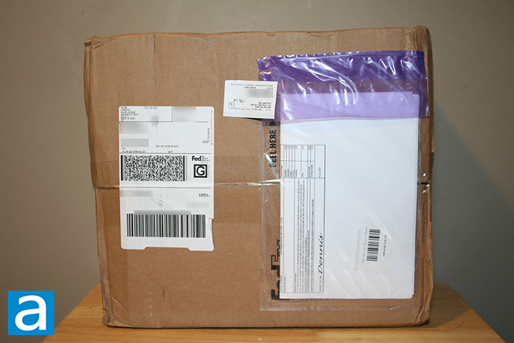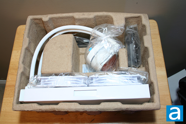 Our review unit of the GAMDIAS CHIONE M3-240W arrived in a medium-sized brown corrugated cardboard shipping box from their headquarters in Brea, California, USA via FedEx Ground. The liquid cooler arrived here in our offices in Calgary, Alberta, Canada in mostly good condition. It should be noted though that the shipping box is quite bruised on the sides, showing that FedEx could have done a better job here.
