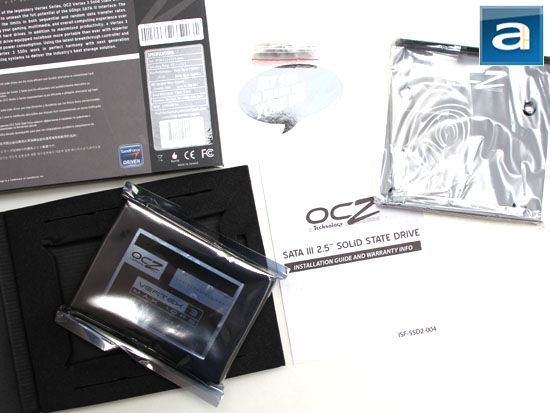 Inside the retail box is familiar black package, consisting of a foam bracket sandwiched between a cardboard flap to house its internal contents. Despite the natural ability of SSDs to withstand high impact forces, OCZ made sure everything will end up safe and sound for the end user. After all, it is almost $600 of awesomeness inside. Out of the box, you will receive an OCZ Vertex 3 Max IOPS SSD inside an anti-static bag, 3.5" adapter bracket, eight screws (Four for attaching your SSD to the adapter bracket, with the remaining four for installing it into your chassis), installation/warranty guide, and a not-so-modest "My SSD is faster than your HDD" sticker.