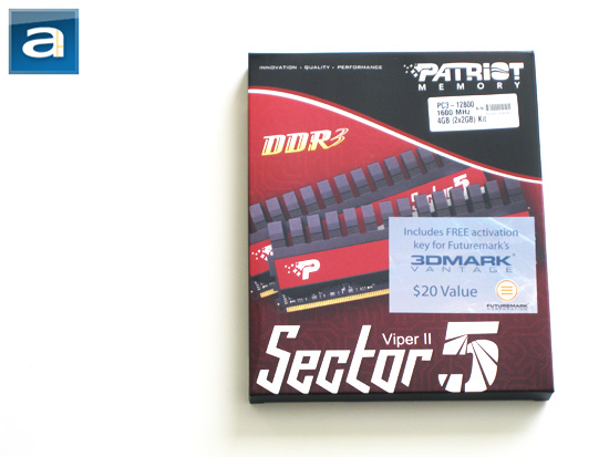 Whew, time sure flies by. When I pulled up my last Patriot RAM review in preparation for this article today, a quick glance at the date labeled 'November 8, 2008' revealed it has been a good two years already (Mind you -- the Patriot Extreme Performance series memory we tested back in November 2008 was some very good stuff). For as long as I have been a computer enthusiast, this company has been a prominent player in the industry, making its name among computer enthusiasts as a manufacturer of high performance computer memory products. In addition to the usual flash drives, SSDs, and the such, Patriot also has some cool stuff in their collection, such as the Patriot Box Office network media player we took a look at back in February this year. After giving G.SKILL's Ripjaws F3-12800CL7D-8GBRH 2x4GB DDR3 a run through our labs, posting a series of very favorable results on the board a couple of weeks ago, it is now the Patriot Viper II Sector 5 PC3-12800 2x2GB set's turn to step up to the challenge. And what a challenge it is. Retailing at around $80 at press time after mail-in rebate, the Viper II Sector 5 running at DDR3-1600 with 8-8-8-24 latencies is, undeniably, priced very competitively among its peers. As the icing on the cake, Patriot also throws in a copy of Futuremark's 3DMark Vantage benchmarking software as part of the package. If you have been following APH Networks and have read all our reviews from the last two weeks, the benchmark results in our review today should be nothing new to you. But for the stuff that really matters, like what kind of IC Patriot has plugged in behind the Viper II Sector 5's heatsink, and how well it overclocks, this is where we will have you all filled in. Let's jump right in and see what we have found out!