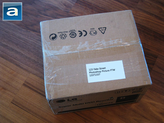Like last time, QNAP shipped it in a rather interesting package -- which happens to be a reused LG DVD burner wholesale brown corrugated cardboard box this time, haha. Using Purolator Air, everything was handled well and arrived in excellent condition from QNAP's Canadian offices at Toronto, Ontario, Canada. I missed the initial delivery, so I conveniently picked it up on the way home after I finished classes that day.
