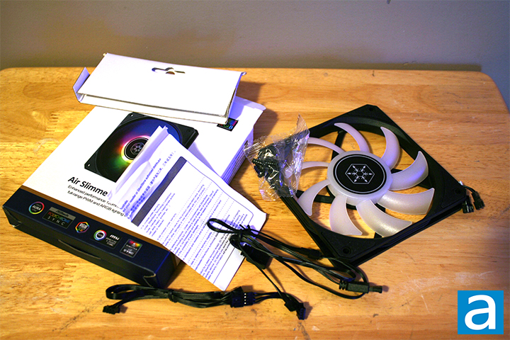 The fan arrived in good condition, showing that the retail box served its purpose. The Air Slimmer 120 ARGB also comes with a user manual and warranty information. Separate cables and mounting screws can also be seen. The Air Slimmer 120 ARGB comes with a limited one-year warranty.