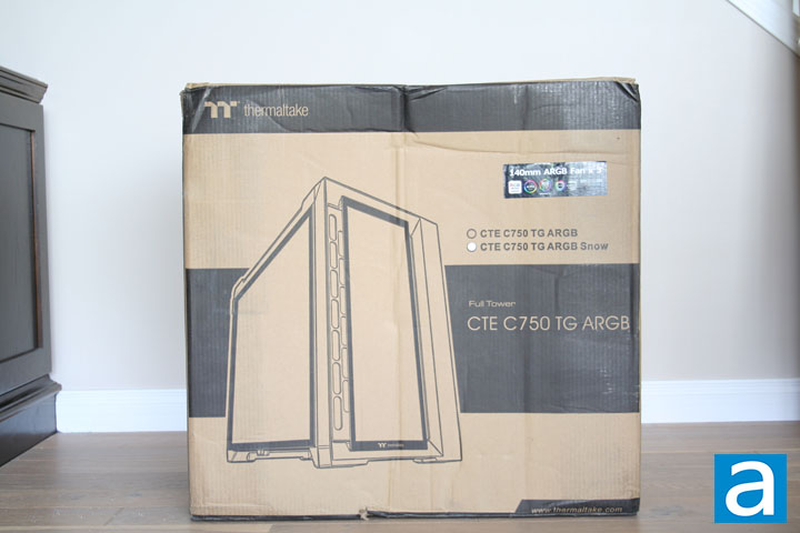 The Thermaltake CTE C750 TG ARGB arrived via UPS Standard from Thermaltake's offices in City of Industry, California. This box served its purpose of being both the shipping and retail package. The box arrived in good condition with no significant scratches or scuffs. I think UPS Standard did a good job as the case made it here in one piece. The front of the box contains an image of the chassis, showing the left and front sides. The Thermaltake logo is printed on the top-left side of the box, while the CTE C750 TG ARGB Snow name can be seen towards the right side of the case image. Specifications can be found on the side and back for retail customers to view before purchasing.