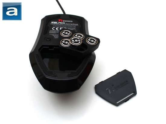 Like its younger brother, the eSPORTS Black vanilla, the Black Element has its set of weights already pre-installed, instead of coming in some sort of tray. They can be easily accessed at the underside of the mouse by simply removing the cover that keeps the weights in place. The cover has a somewhat flexible section for users to unlatch the inner hook, which keeps the cover in its place. The Black Element also houses a rubber tray to keep the weights secured down in proper order so it does not bounce around. Of course, if you prefer having no weights at all, you can simply remove the whole container. The question is, where in the world could you ever keep weights if no extra tin tray is provided? Luckily, you are provided with a protective soft case out of the box, and within that case contains pouches where you can conveniently place your weights. However, we would appreciate it if more variety of weights were provided to better suit the greater population, as there are only five 4.5g weights available from the factory.