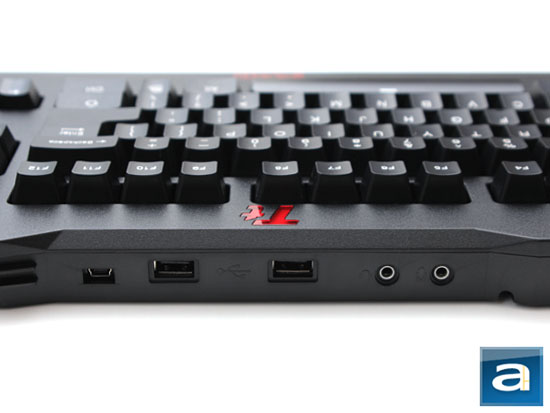 At the back of the Tt eSPORTS Meka G-Unit is an array of connectors. From the left, we have a USB mini-B port to connect the keyboard to your computer, two USB Type A ports to act as a USB hub, and two 3.5mm jacks for headphone and mic, respectively. The company does not say how much power is available on the USB ports, but based on what we have seen in the past, I don't think you will get more than 100mA, since the G-Unit is not self-powered. I think it is particular convenient to have a built-in USB sound card on a keyboard, especially considering how convenient it is to hook up your audio peripherals. Now you can keep all your G-Unit music to yourself while playing Counter-Strike, and your family members will thank you, rather than begging for your mercy.