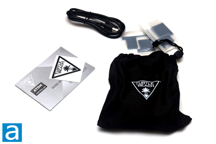 Out of the box, the Turtle Beach Atom Controller for iOS is contained in a nice black fabric carrying bag. A rubber USB Type-C to Type-A cable is also provided and it measures 1m in length. Finally, we have documentation for getting started with the Atom Controller and a Turtle Beach sticker. There is not much else to look at, so let us take a closer look at the controller itself.