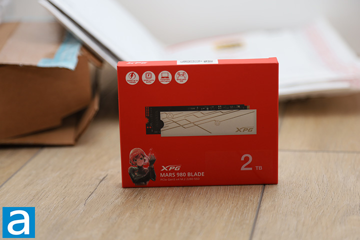 Our review unit of the XPG Mars 980 Blade 2TB arrived in its retail packaging. As it has been for the last few years, there is no ADATA branding. The XPG Mars 980 Blade's retail box is predominantly red with white text. XPG's logo along with the model name and product description is placed along the bottom, with a transparent sticker indicating its storage capacity. An array of icons highlights its 14GB/s speed, DRAM cache buffer, laptop compatibility, and PS5 compatibility is placed at the upper left corner. Across the middle is a picture of SSD with the heatsink not installed. More branding and product description in various languages can be found on the remaining sides of the box.