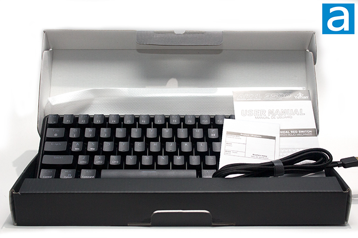 Out of the box, you will receive the Yeyian Akil Series 3500 itself alongside the braided cable, quick start guide, warranty booklet, and a plastic keycap puller. The keyboard was wrapped in some nice PE foam to prevent any surface scratches on the keyboard, while the cable was gently placed underneath a fold of cardboard. The quality of packaging was on par with many other budget keyboards. The packaging was nice and simple, while having an adequate amount of cushioning to ensure the safety of the keyboard.