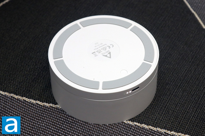 Flipping over the fan, you can see the base of the ARCTIC Summair Plus. The base is a rubber ring split into five sections. This rubber base keeps the fan in place, especially when it is operating. The 320g weight of the Summair Plus should also keep the whole unit stable. In the middle, we have the ARCTIC logo, some safety certifications, the product name, and its input voltage and current. At the back of the base, you can spot a USB Type-C input for charging the Summair Plus. Its internal lithium polymer battery is 3700mAh in capacity and ARCTIC states this could last you from 2.3 to 25 hours, depending on how fast you operate the fan. Also, you can expect to fully charge the Summair Plus in 3 hours. Next to the USB port, we have three dots to indicate the battery status. When it is plugged in and charging, the lights glow and blinks to indicate how much charge the battery has available. You can read the online manual to show all the distinct battery ranges, but I appreciate how ARCTIC has shown a granular range with the limitations of three lights. These lights glow while the Summair Plus is powered on to show the current battery life. Finally, if you want, you can press the circular button found on the base for a battery check with these LEDs.