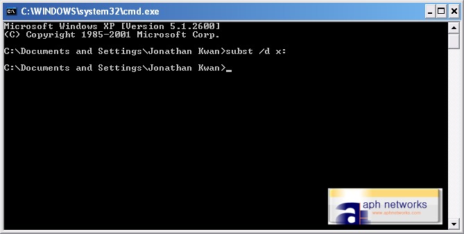 4. If you don't need the new "drive" anymore, just delete it. Type subst /d x: in Command Prompt, where "x:" is the drive letter you created earlier.