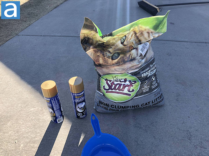 I purchased the brake cleaner and kitty litter for $27.27 at Canadian Tire.