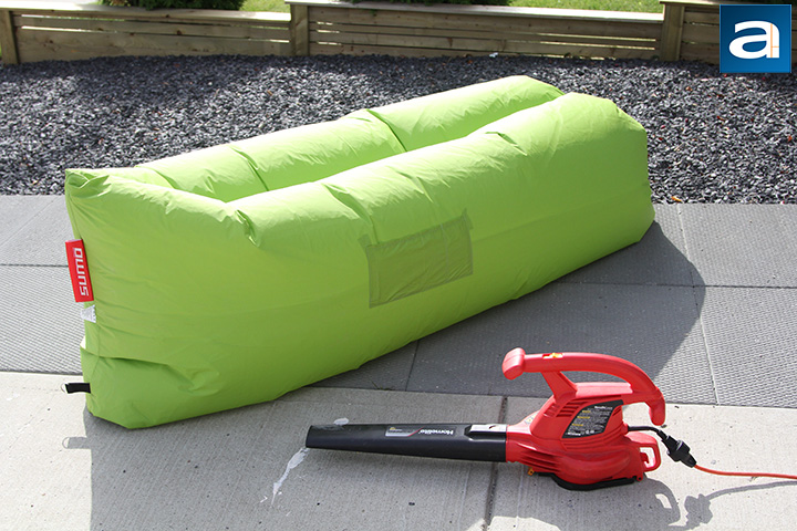 As for me, I found that a little bit inefficient, especially considering how awkward it was to run around on my front driveway with a large lime green bag of in front of my neighbors. It is also quite challenging, unless it is a windy day, and there is a large open field for you to run in. Therefore, I decided to solve the problem as a true engineer would do, and hit each mouth of the Sumo Air Lounger with my trusty high speed electric leaf blower. In case you do not own a leaf blower at home, it is actually quite useful for doing anything other than blowing leaves (I mean, I have never used it for leaf blowing, honestly), such as quickly drying off your car after a car wash, or using it to clean dust off something dusty. To add to the list of useful tasks a leaf blower can do, inflating the Sumo Air Lounger with 220mph wind makes the whole process a snap as I yell "POWAAAAA" in Jeremy Clarkson's voice. The inflated size is 78.7" x 35.4"; a good size for most adults even in North America.