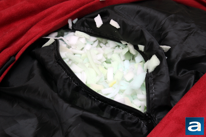 As for using the beanbag, it definitely is an interesting experience. You can fit two to three people on it, depending on the size of the person. This is also actually quite comfortable for general gaming or TV watching. As promised, the Sumo Gamer Suede molds to your body shape, creating a natural indent. Once you get off, it also returns to its rounded nature. It is generally quite comfortable due to this nature. I really like the red color this beanbag comes in, and there are definitely other colors if you so desire. However, one thing I will mention is the fact the suede material easily collects static electricity. This is accentuated even more so with the dry climate Calgary has. It is not too bad, but it can get annoying when you try to clean dust or other specks off the beanbag, because they easily stick. In addition, the internal foam quickly gets out of the black bag and onto the red suede cover due to the static attraction. I will say, everything feels high quality.