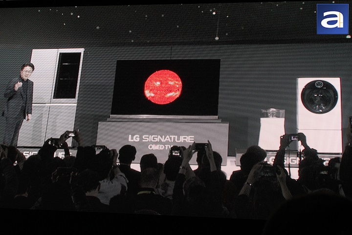 As for OLED TVs, LG has showcased their 75" G6 OLED TV. This specific model is streamlined to the point where its glass body is only 2.57mm thick. To get a better idea of how amazingly thin it is, imagine four credit cards stacked on top of each other. As for the G6's base, it features an integrated speaker, which also functions as a stand with multiple woofers. According to LG, there is no light bleeding with perfect black levels and one billion rich colors. To put this simply, this is as realistic as image quality can get.