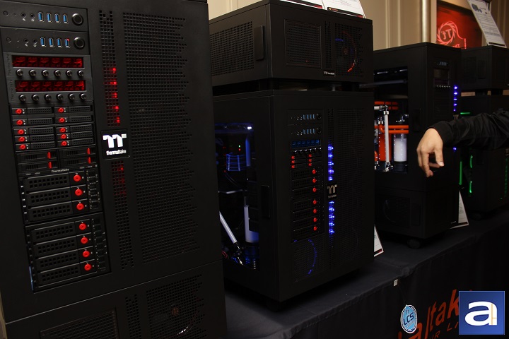 Thermaltake not only had new products in the enthusiast line, but also came up with some consumer grade chassis. What we have here are the Core X31 and Core X71. The X31 is your standard mid-tower chassis, whereas the X71 is slightly higher end with more space and brackets to work with. Both chassis have been redesigned for cleaner looks, better cooling capabilities, and better dust reduction in the form of fan filters being placed throughout the chassis itself.