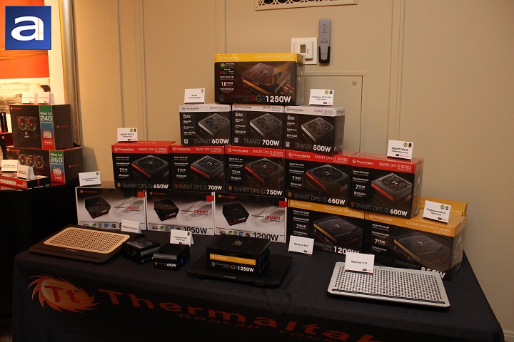 Power supplies from Thermaltake is still popular, and they still intend on pushing the limits in this area. You may notice two small form factor power supplies displayed near the front. Small may not mean "non-beefy" and weak. In fact, these small little guys are Gold Certified. They have even produced a Titanium Certified power supply, namely, the Toughpower DPS G 1250W.