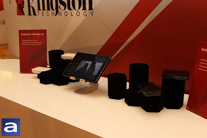 The first thing we looked at was the MobileLite Wireless G3 and Wireless Pro. These two wireless media streamers allow users to upload their files from their Android or iOS devices, and access them later. The two hubs create a Wi-Fi server allowing up to five devices simultaneously access the hub and its files, similar to what we saw with the EMTEC Power Connect. Thus, USB drives, or SD cards can be inserted and accessed with these two media hubs. In addition, they both have internal batteries to charge your devices on the go. Both support 802.11ac wireless for faster data transfer. Their demo never seemed to stutter while playing and jumping through Captain America, which was far better than the Power Connect. The differences between the G3 and the Pro, besides the color, are the storage options and the battery size. The G3 has no internal storage, and packs a large 5600mAh battery. The Pro includes 64GB of internal memory, with an even larger 6900mAh battery. Pricing and availability will be announced later.