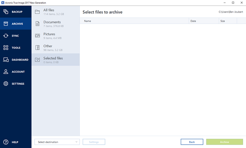 Installing and setting up Acronis True Image 2017 was a breeze. The entire process is streamlined to make it as easy as possible to reach the first page pictured above. After signing in and activating the software, I was met with the most important feature of the Acronis True Image 2017, which is backing up your computer. As you can see, the first page has a clean design; simply laying out all the different components of the program. The dark blue column toward the left functions as the map for the software. This column makes navigating the Acronis True Image 2017 simple and straightforward. Throughout my use, I never encountered the program slowing down, random spikes of lag, or even random crashes. All in all, the Acronis True Image 2017 definitely makes for a user-friendly experience.