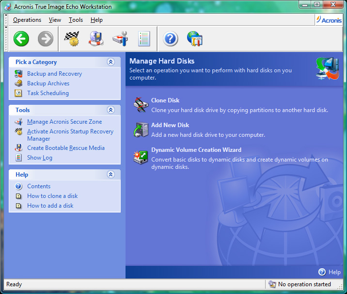 A note on the side before we start, there are some features on the left navigation pane as seen in the screenshot above. Acronis Secure Zone, as the name suggests, allows the user to set a hidden secure partition on the hard disk; and are not regularly accessible by other software.
