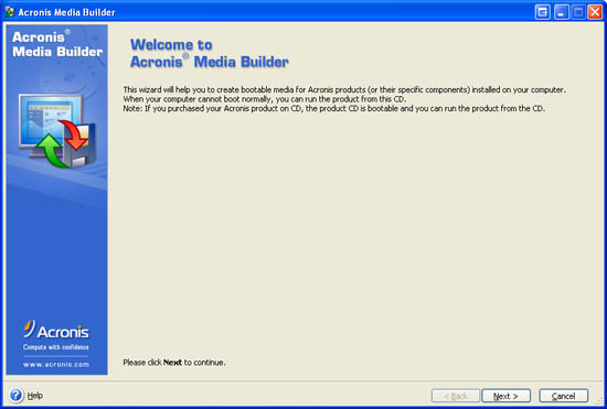 After you click "Next", the user will be brought to a screen for the user to pick the contents to be put onto the rescue media. That said, besides the Universal Restore only features, these will be included the Acronis True Image Echo Workstation anyways. Burning a bootable image to disc includes an Acronis True Image recovery program for the user to boot into the disc, and select the image to restore later on.