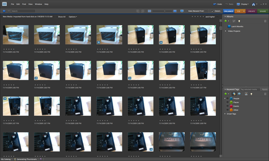 One very important aspect to the Elements series of products has been the Organizer, which is used for -- you guessed it -- organizing various media files such as photos. As far as photos go, it is quite similar in practice to other software packages such as Picasa in creating for a place for users to organize and tag photos. With Adobe's proclaimed People Recognition, it is easy to tag people in photos to keep track of which ones are which. This is especially useful when you want to upload pictures of yourself and/or other individuals onto social networking websites such as Facebook.