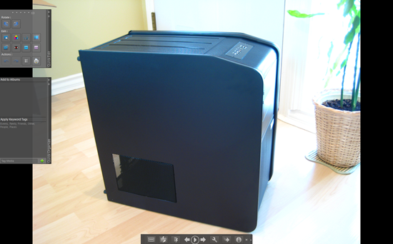 Some features that have been enhanced in this version include on-the-fly usage of the Organizer to edit photos. A toolbar can be found on top that has a search function for searching tagged photos, image rotate controls, zoom slider, as well as a sorter to sort by dates. Sorting by date can either be set with newest first, or oldest first. The zoom slider has also been improved, and photos can be viewed in full size right from Organizer. As aforementioned, there are also integrated tools that can be used to quickly fix or edit the photos within Organizer itself.