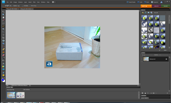 Putting the shared Organizer feature aside, let's look at Adobe Photoshop Elements 8 itself. The layout of the program is definitely not something we haven't seen before. Almost anyone that has used Photoshop in the past should be fairly familiar with the array of panes and controls; from Effects and Layers down to Adjustments. The user interface is "tried and true" -- generally speaking, it's fairly simple and user intuitive. I believe it is a good thing to keep the same layout, as it has worked for so many versions of Photoshop. The left side contains common tools such as the Grab Tool, Crop Tool, and Lasso, just to name a few. Most of the usual suspects are present. The Project Bin tab at the bottom is useful when having multiple files open to give a graphical preview of the projects, unlike the tabs above, which only provide the file names. One of the most important aspects of Photoshop Elements are the tabs located on the right side: Edit, Create and Share. There are three levels of the Edit section; the first being the default Full. However, the user also has an option to use Quick or Guided Edit. We will be taking a look into each one of these in detail in just a moment. We will take a peek into the Create and Share tabs on the next page of this report as well.
