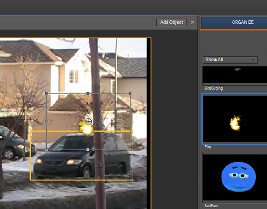 I produced a quick demo below to demonstrate Motion Tracking in Adobe Premiere Elements 8. As you can see, it actually follows the little SUV in front of my car pretty well -- but it won't follow the Mazda minivan the entire time due to the continuously changing angle. By the way, the lemon is just randomness, haha.