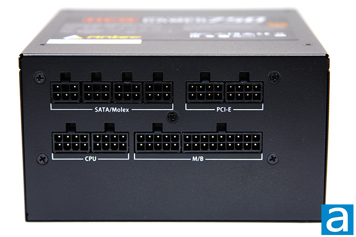 The rear cable connection panel is done nicely. Similar connectors are grouped together; and are laid out in a very logical manner. To ensure you know what is going on, they are all grouped and clearly labeled for minimal ambiguity. From the left to right and top to bottom, we have a group of four connectors for nine Serial ATA and four Molex connectors, two connectors for four PCI Express 6+2 pin, and two ATX/EPS 4+4 pin headers. The Motherboard section supports an ATX 24-pin connector by two separate blocks next to each other. Incompatible outputs will not physically fit into each other, so I think Antec has done a great job in this regard. This generous array of available connectors should be more than sufficient for casual users and power enthusiasts alike.